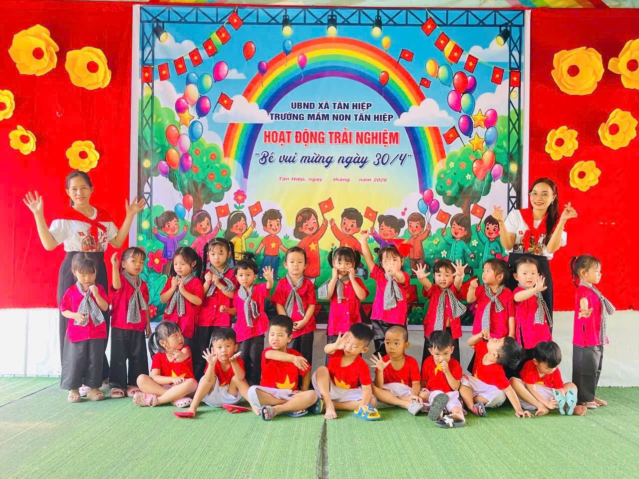 NGÀY TRẢI NGHIỆM “BÉ VUI MỪNG 30/4” Hòa trong không khí cả nước hướng về ngày Giải phóng miền Nam, thống nhất đất nước 30/4, các bé Trường Mầm non Tân Hiệp đã tham gia ngày trải nghiệm “Bé vui mừng 30/4” với nhiều hoạt động vui chơi, vận động đầy ý nghĩa. Thông qua hành trình trải nghiệm, các bé được vui chơi, rèn luyện kỹ năng, tinh thần đoàn kết và bước đầu cảm nhận niềm tự hào về quê hương, đất nước. 🌱 Một ngày hội nhỏ nhưng đong đầy niềm vui, góp phần gieo trong tâm hồn trẻ thơ tình yêu Tổ quốc Việt Nam. Chào mừng ngày 30/4 – Tự hào Việt Nam!