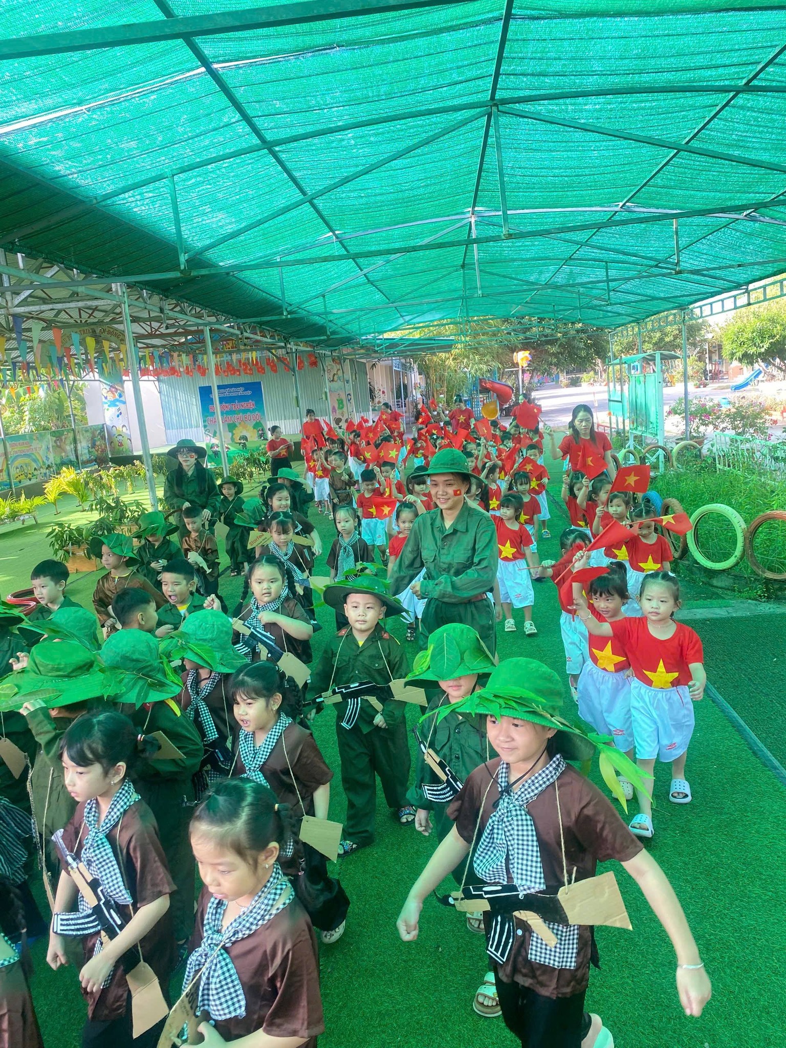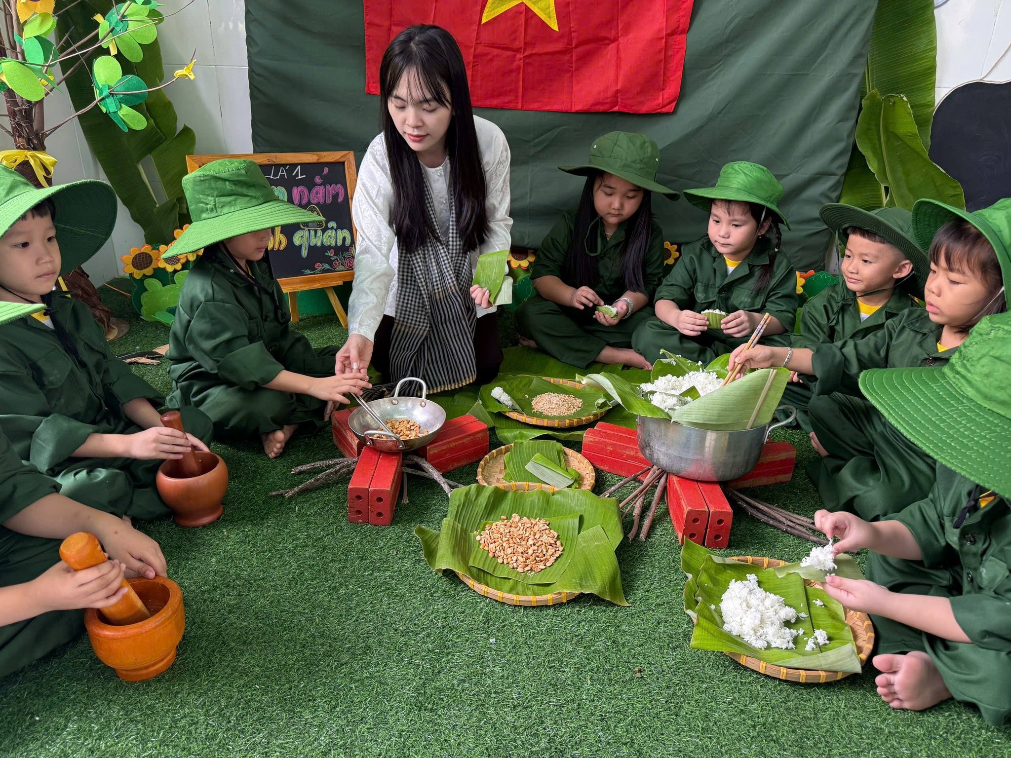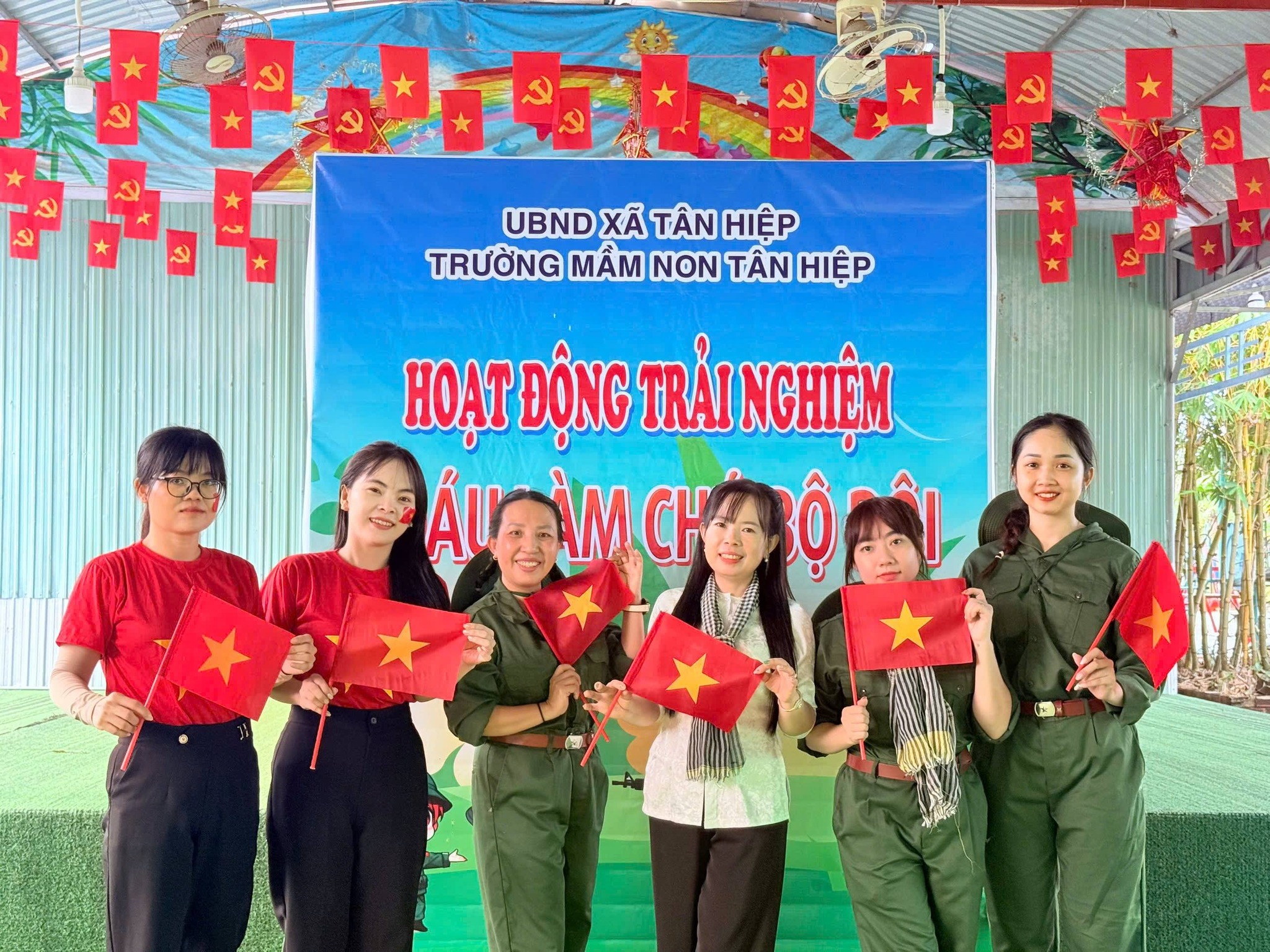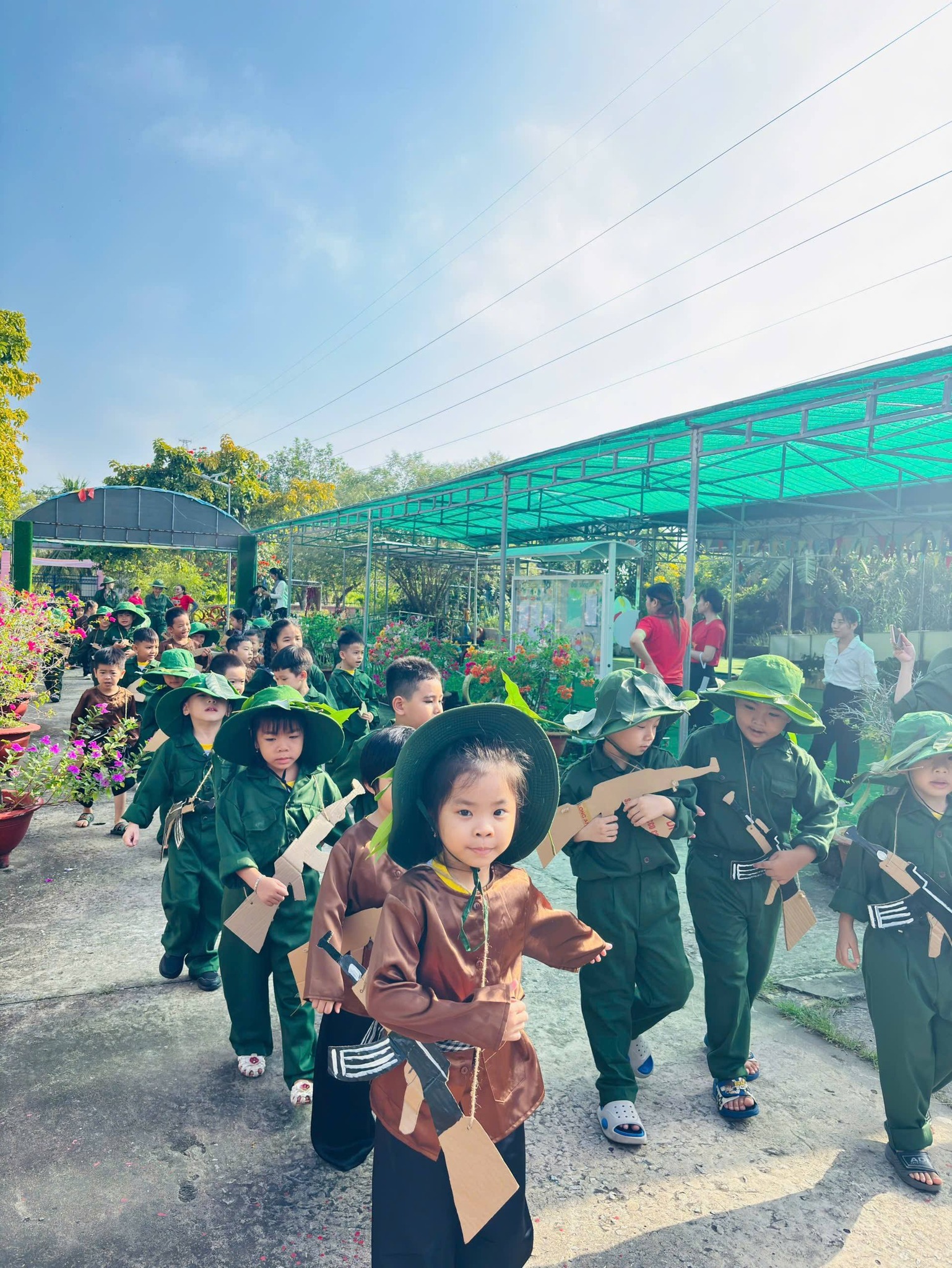 Nhân kỷ niệm Ngày thành lập Quân đội Nhân dân Việt Nam 22/12, nhà trường tổ chức hoạt động trải nghiệm “Cháu làm chú bộ đội” nhằm giúp trẻ hiểu biết những nét cơ bản về hình ảnh người chiến sĩ Quân đội Nhân dân Việt Nam – lực lượng anh hùng, trung thành với Tổ quốc, tận tụy vì Nhân dân. Thông qua hoạt động trải nghiệm ý nghĩa, các bé được hóa thân thành những chú bộ đội nhỏ, học cách rèn luyện tính kỷ luật, tinh thần đoàn kết, lòng yêu nước và niềm tự hào dân tộc. Đây là dịp giáo dục trẻ truyền thống “Uống nước nhớ nguồn”, góp phần bồi dưỡng nhân cách và tình yêu quê hương đất nước ngay từ những năm đầu đời.