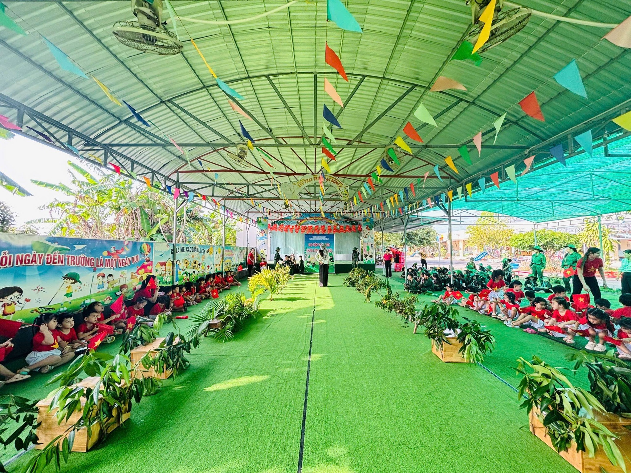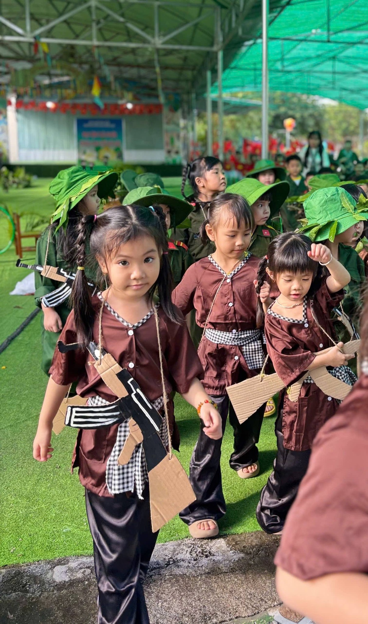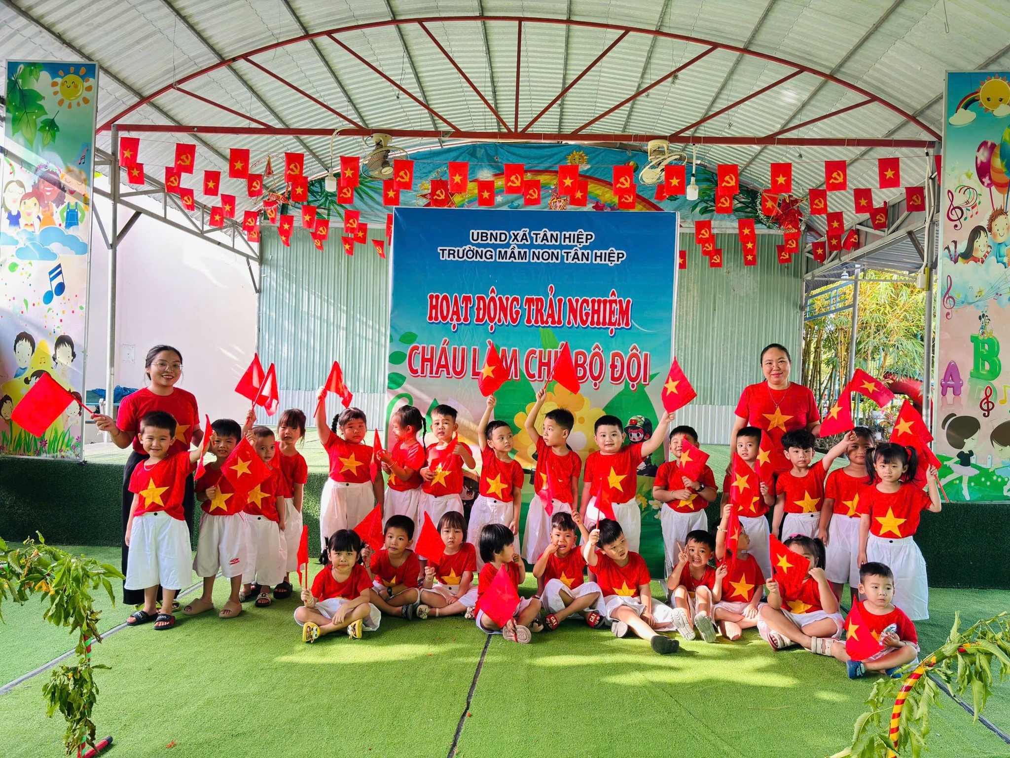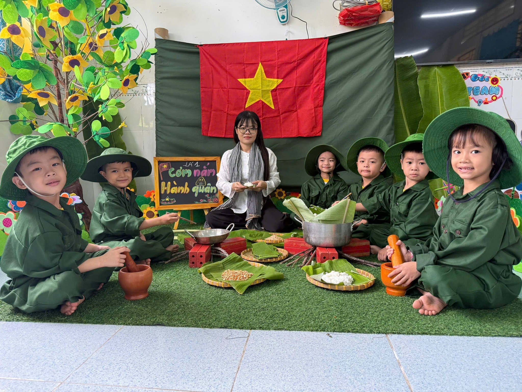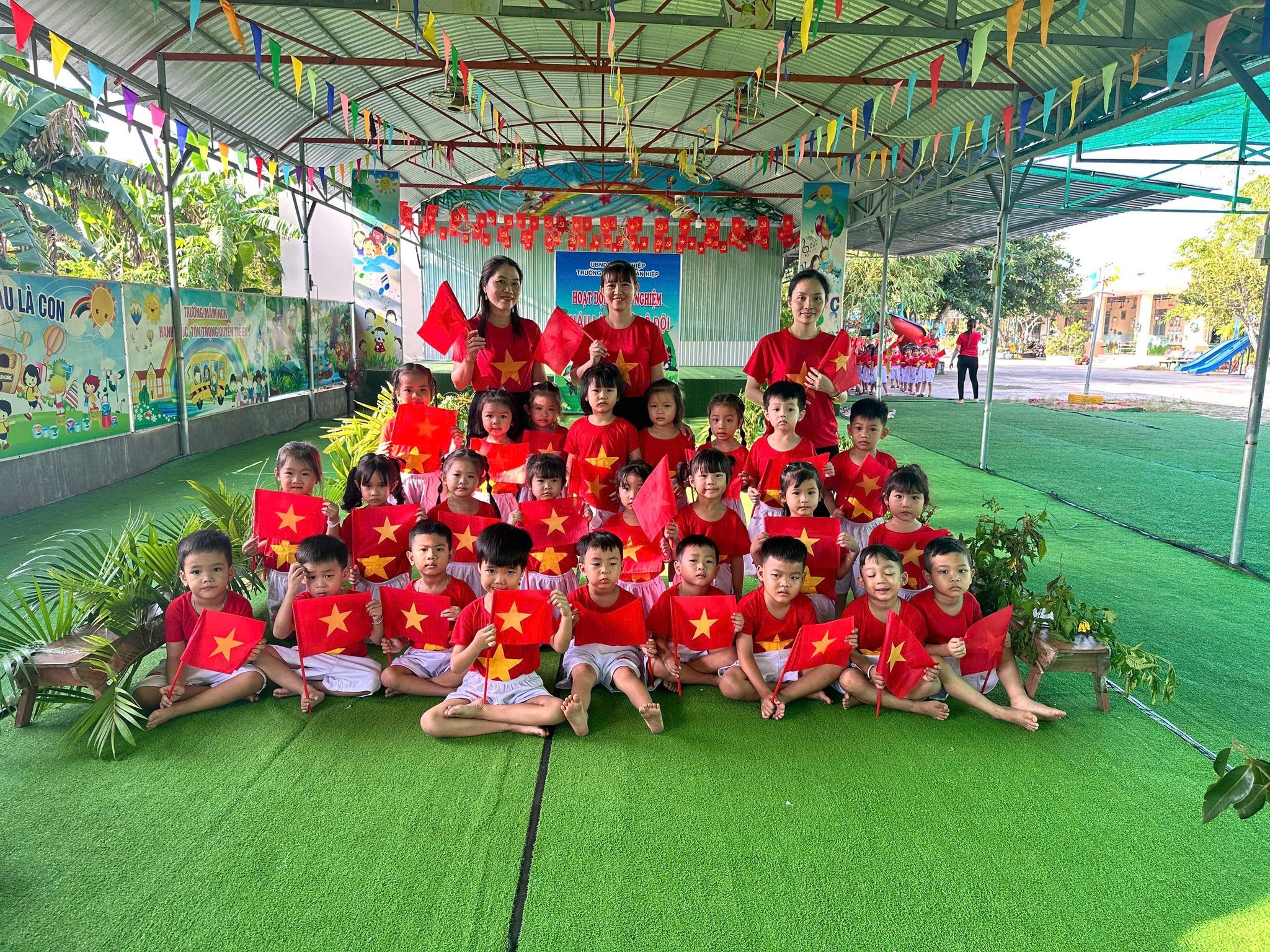 Nhân kỷ niệm Ngày thành lập Quân đội Nhân dân Việt Nam 22/12, nhà trường tổ chức hoạt động trải nghiệm “Cháu làm chú bộ đội” nhằm giúp trẻ hiểu biết những nét cơ bản về hình ảnh người chiến sĩ Quân đội Nhân dân Việt Nam – lực lượng anh hùng, trung thành với Tổ quốc, tận tụy vì Nhân dân. Thông qua hoạt động trải nghiệm ý nghĩa, các bé được hóa thân thành những chú bộ đội nhỏ, học cách rèn luyện tính kỷ luật, tinh thần đoàn kết, lòng yêu nước và niềm tự hào dân tộc. Đây là dịp giáo dục trẻ truyền thống “Uống nước nhớ nguồn”, góp phần bồi dưỡng nhân cách và tình yêu quê hương đất nước ngay từ những năm đầu đời.